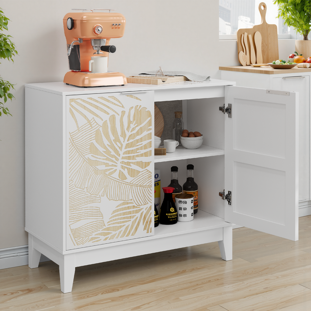 Unique Sideboard with Leaf Carving: This buffet is crafted with exceptional craftsmanship. The leaf carving design gives the sideboard a beautiful overall look and suits any style and ambiance.