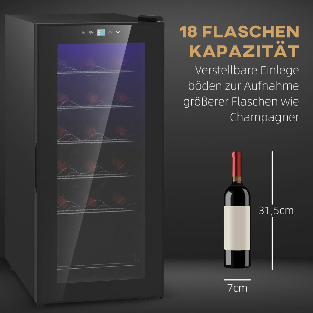Compact with Large Capacity: Despite its space-saving design, our bottle cooler offers space for up to 18 bottles (7 x 31.5 cm) on 6 levels. This includes 4 adjustable shelves, accommodating larger bottles like champagne, making it ideal for small apartments, kitchens, and home bars.